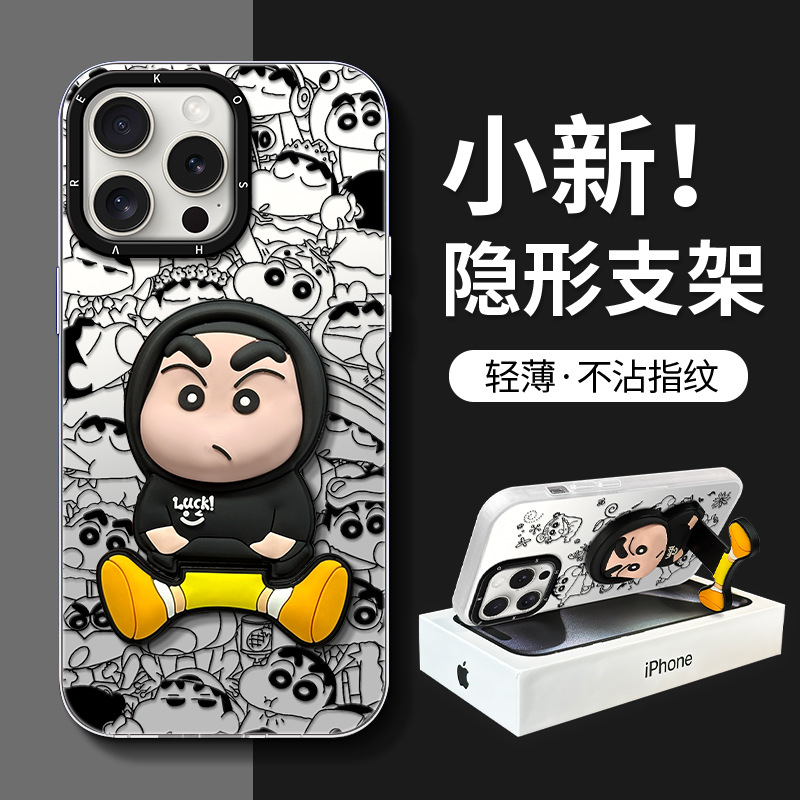 アニメしんちゃん伸縮スタンドはリンゴ16元気携帯ケースめい15proかわいい13フロスト14/12を適用している
