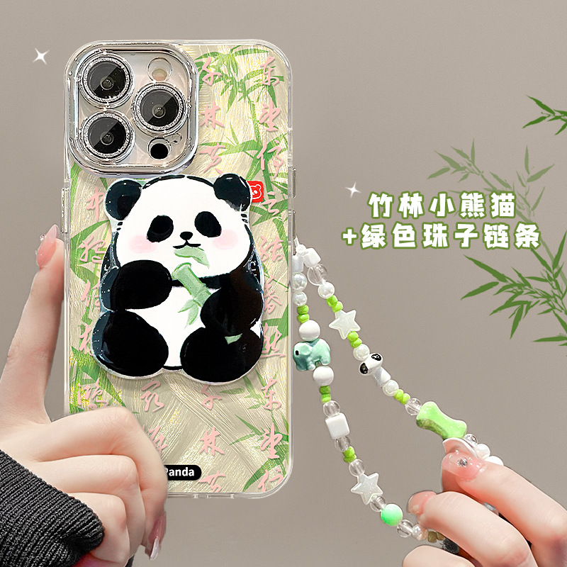 国風竹パンダのブレスレットはアップル16の携帯ケース15promax羽紗13磁気吸引スタンド14を適用します。