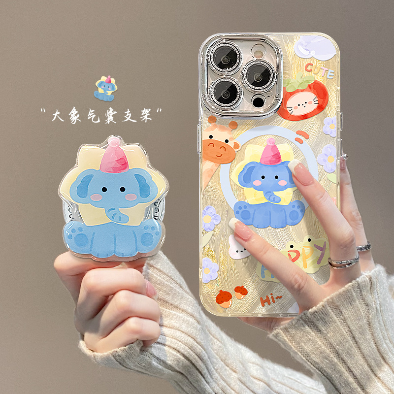 かわいい象の磁気吸引の支柱はリンゴの16promaxの携帯の箱の15精孔の羽の糸の13の新しい女性の金の14硬いです。