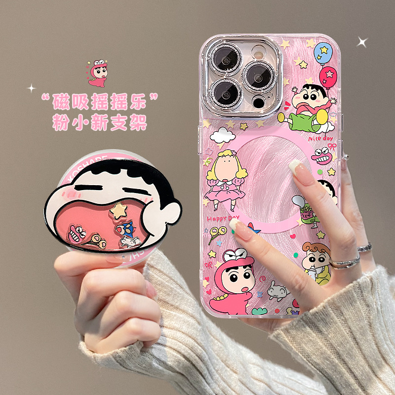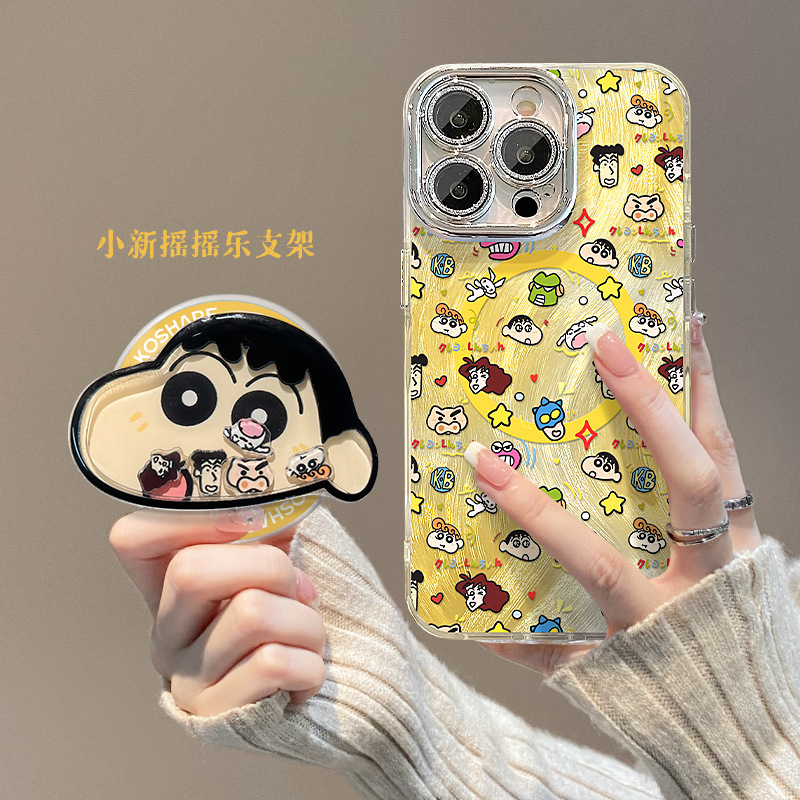 しんちゃんロッキングマグネットホルダーアップル13かわいい携帯ケース16promax羽紗15高級感14
