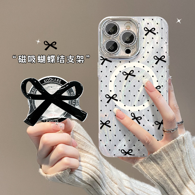 黒い蝶結びのスタンドはアップルの16羽の糸の磁気吸引の携帯の箱の15promaxの軽くて豪華な14高級感の13を適用します。