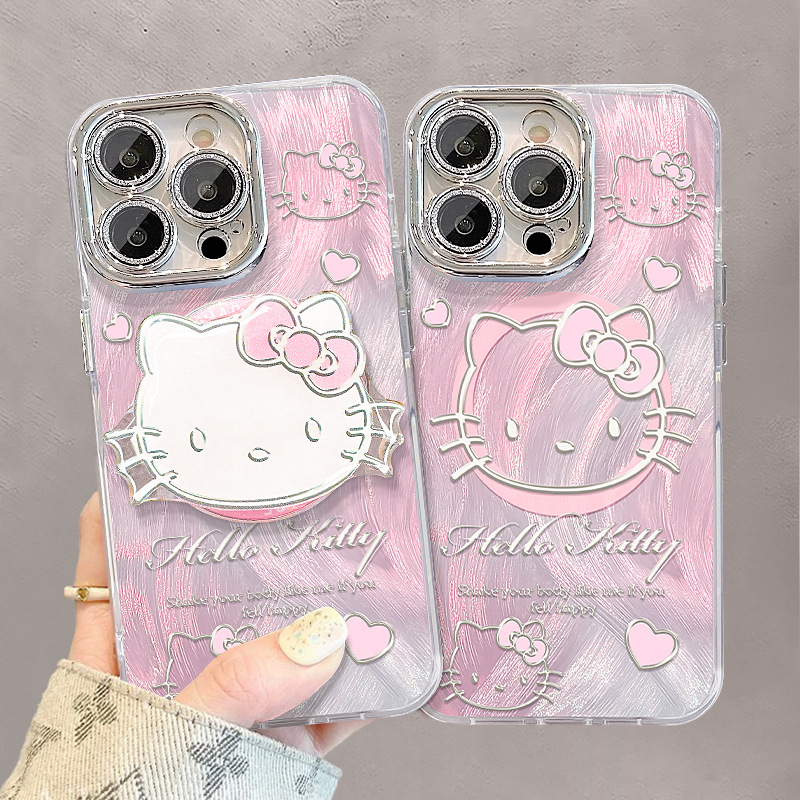ケイティ猫磁気吸引スタンドはiphone16アップルの携帯ケース13かわいいアニメ15羽糸レンズフィルム14を適用している