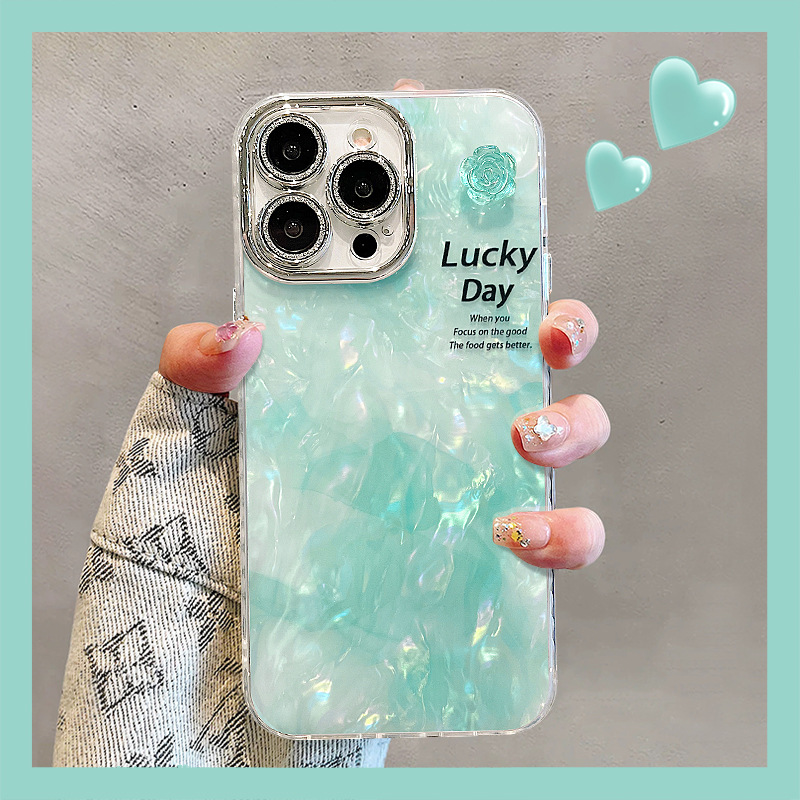 ミント緑山茶花公仔適用リンゴ13promax携帯ケース16高級感15貝殻紋14清新