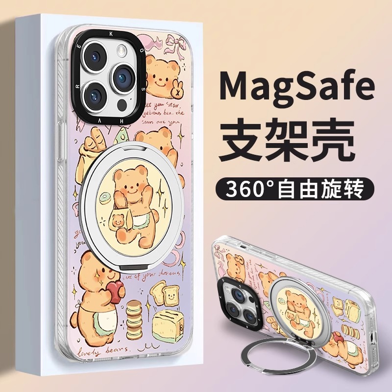 バター熊はリンゴ16promax携帯電話ケース13磁気吸引スタンド15かわいいアニメ14の新しい女性モデル11を適用している