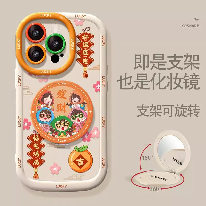 国風化粧鏡スタンドはリンゴ16promax携帯ケース13シリコンゴム転倒防止15全包14保護カバーを適用している