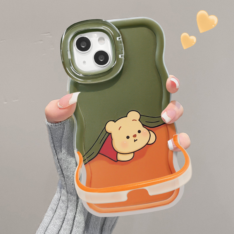 カートゥーンウィニーベアーはiphone16かわいいシリコンゴム15promaxダブルスタンドリンゴ携帯ケース14女を適用している