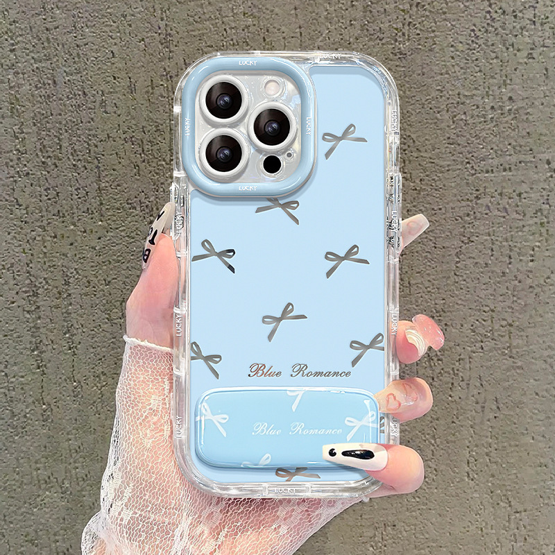Ins蝶結びはiphone16アップルの携帯ケース15promax鏡面14鏡スタンド13転倒防止8