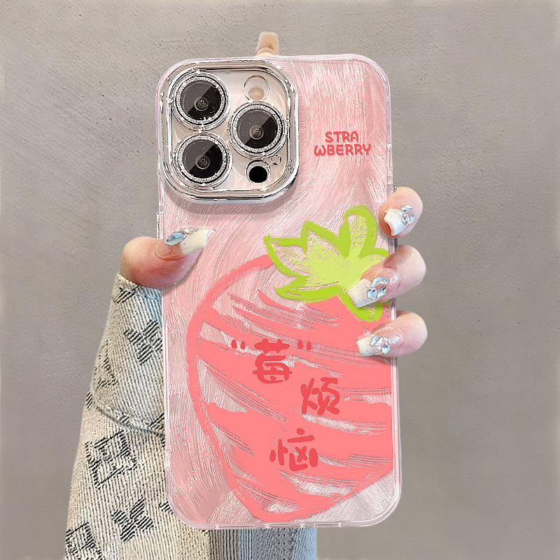 Ins油絵いちご梨適用iphone16リンゴ羽糸携帯ケース15promax小衆14保護カバーx