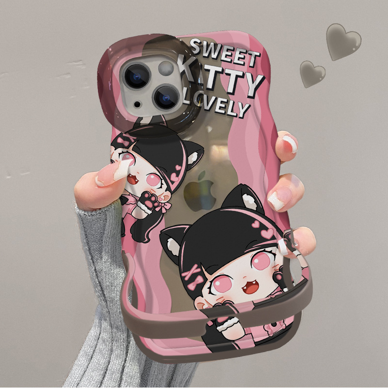 猫の女の子は16promaxアップルの携帯ケース15かわいいアニメ14ダブルスタンド13シリコン11小衆を適用します。