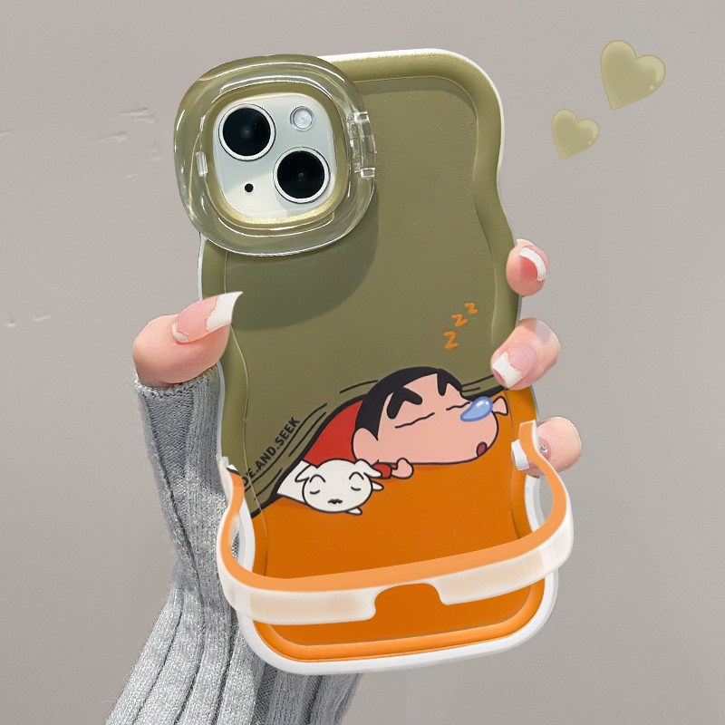 しんちゃんが寝ているアップルの携帯ケース16promaxかわいいアニメ15ダブルスタンドiphone14シリコン13