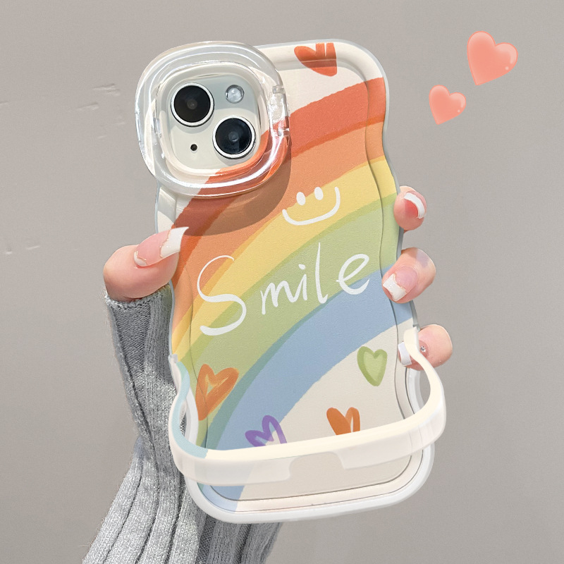油絵のほほえみの虹はiphone16アップルの携帯のケースの15promaxのステルスダブルのスタンドの14かわいい13を適用します。