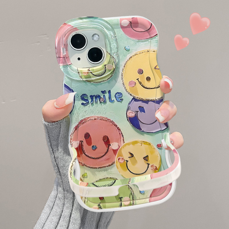 Ins油絵笑顔はiphone16アップルの携帯ケース15promaxダブルスタンド14かわいいシリコン13を適用している