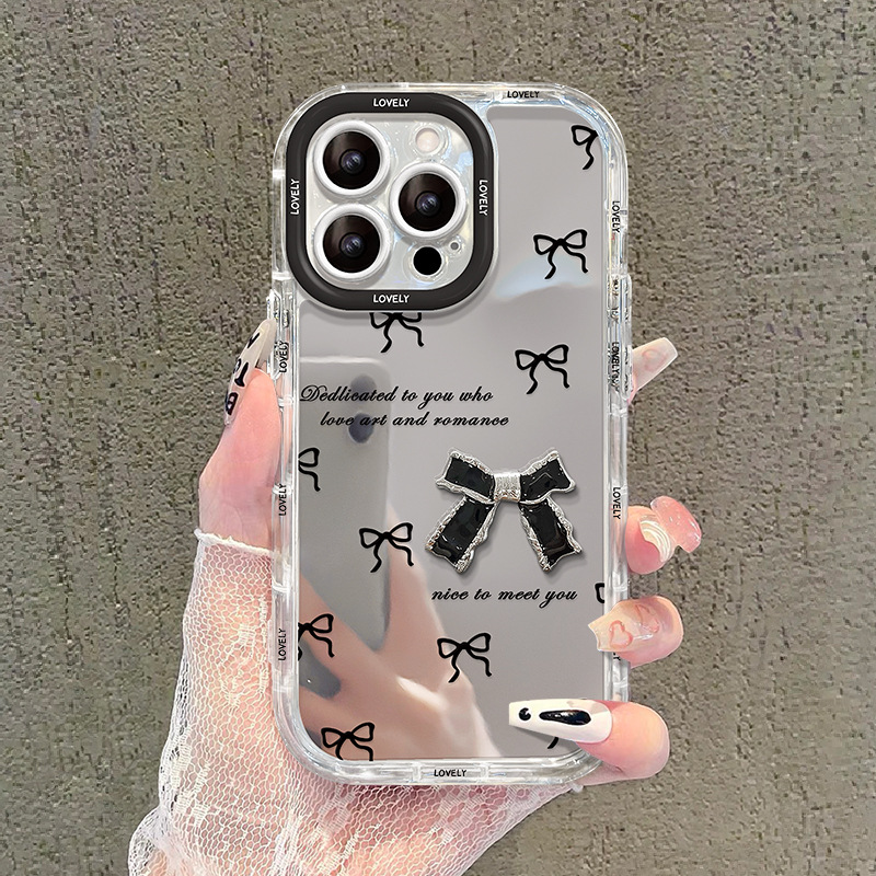 黒い蝶結びはiphone15アップルの携帯ケース16promax鏡面立体14軽贅沢13転倒防止を適用します。