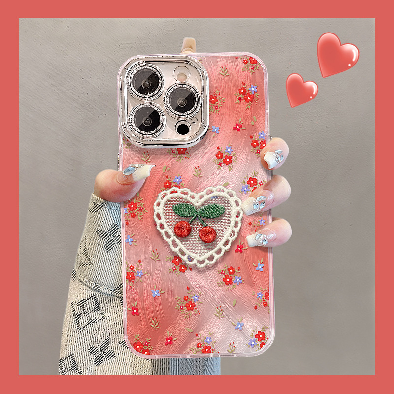 刺繍さくらんぼはiphone16リンゴの携帯ケース15羽糸砕花14promax高級感13転倒防止を適用している