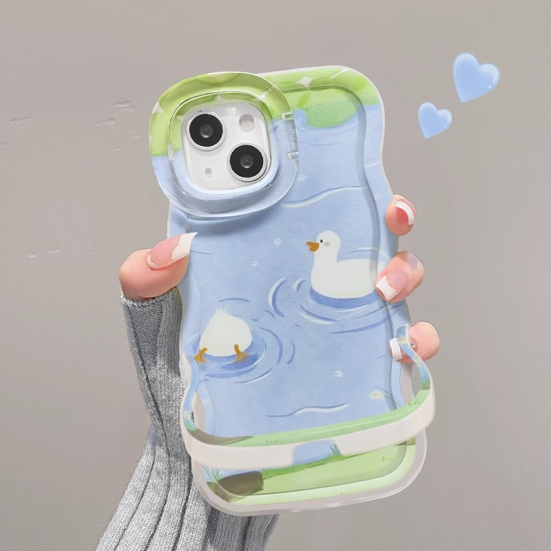 Ins水泳アヒルはiphone16アップルの携帯ケース15かわいい転倒防止14ダブルスタンド13夏12