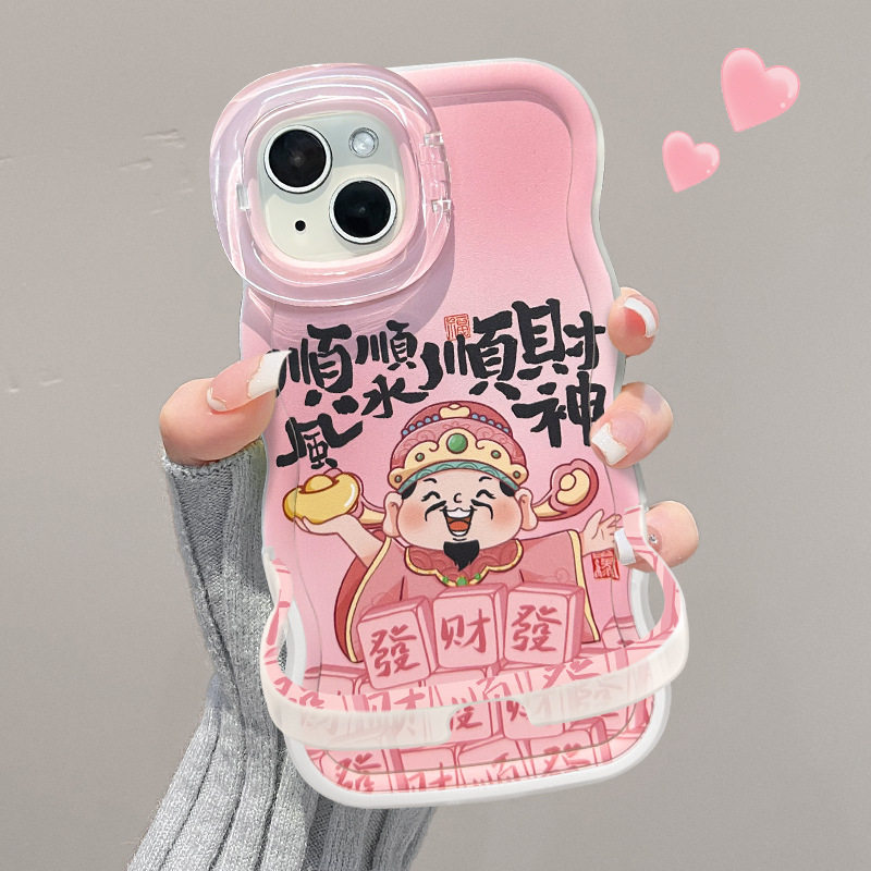 ピンクの財神爺はiphone16アップルの携帯ケース15promaxダブルスタンド14シリカゲル13国風12を適用します。