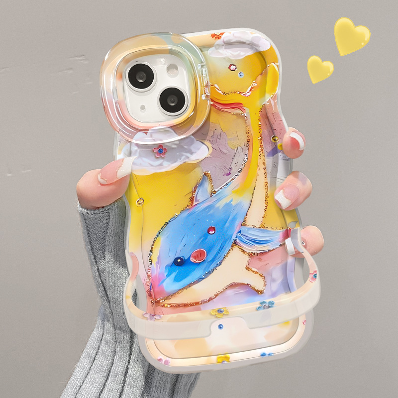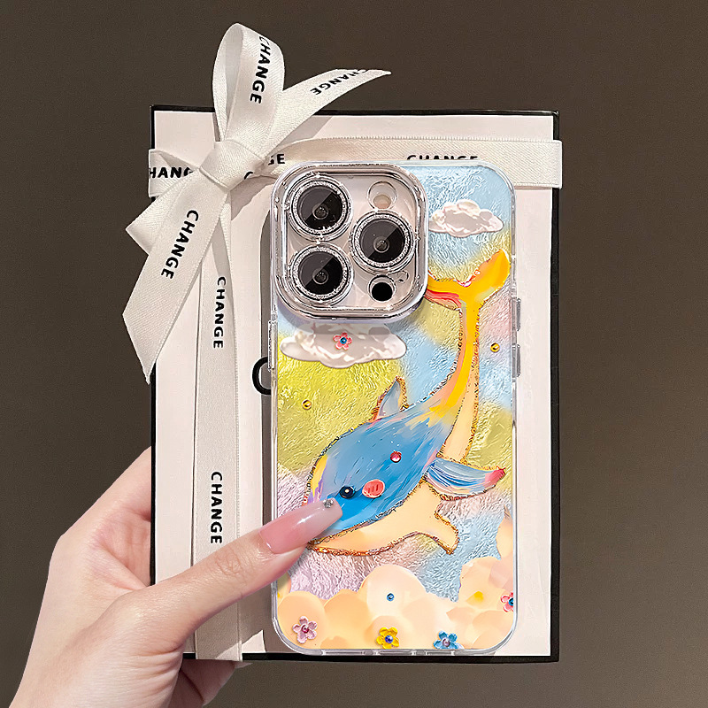 油絵イルカはリンゴ16promax携帯ケースiphone15かわいい14全包13高級感卸売りを適用している