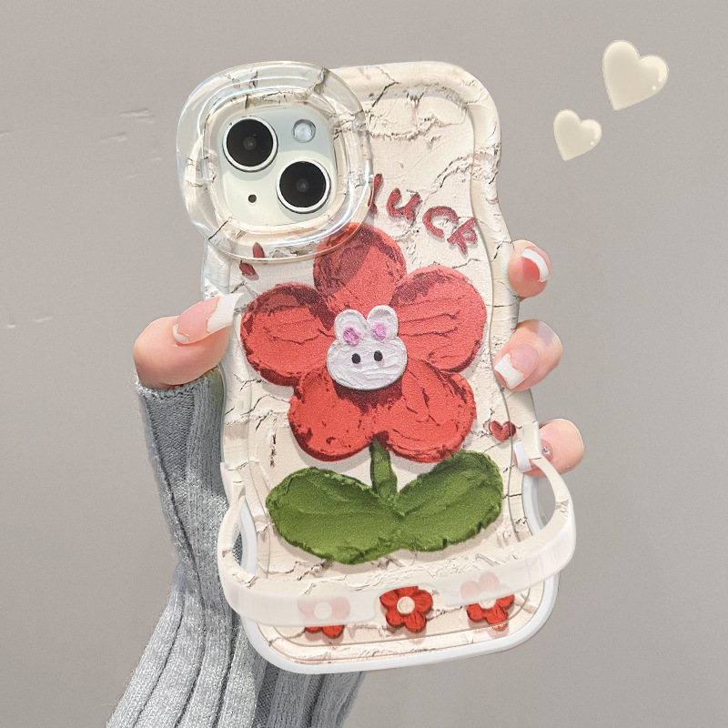 油絵ウサギの花はリンゴ15の携帯ケース華為mate60proダブルスタンド14米13シリコン12を適用している