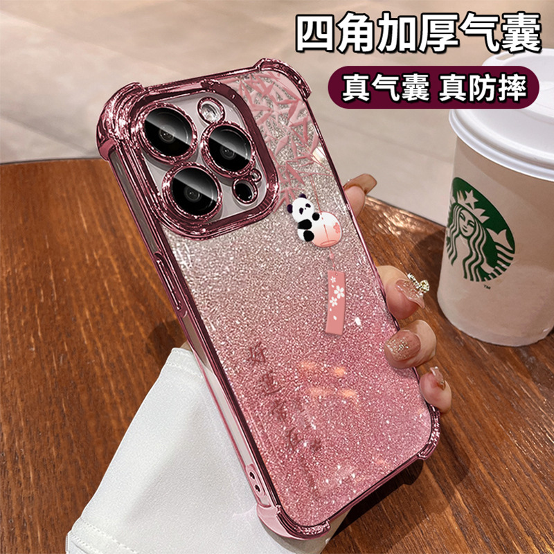 幸運パンダはリンゴ16pro携帯ケース華為p70メッキ四角転倒防止15シリコンゴム14新13を適用した