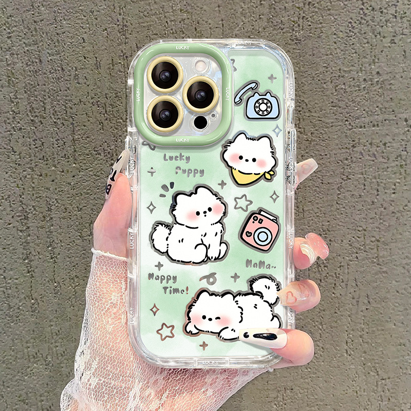 かわいい子犬はリンゴ15promax携帯ケースiphone16鏡面クリームケース14転倒防止13高級