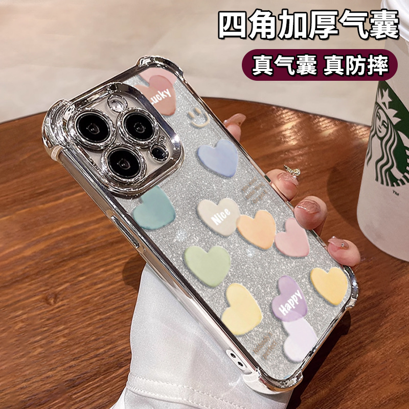 カラー愛はリンゴ16pro携帯ケース15メッキ四角転倒防止14高級感13シリコンゴム12/11