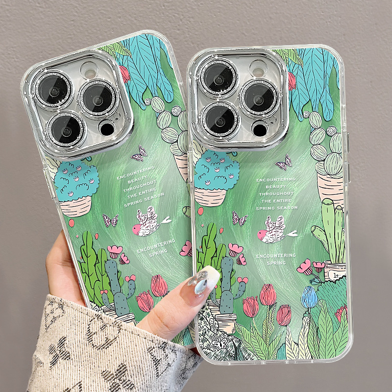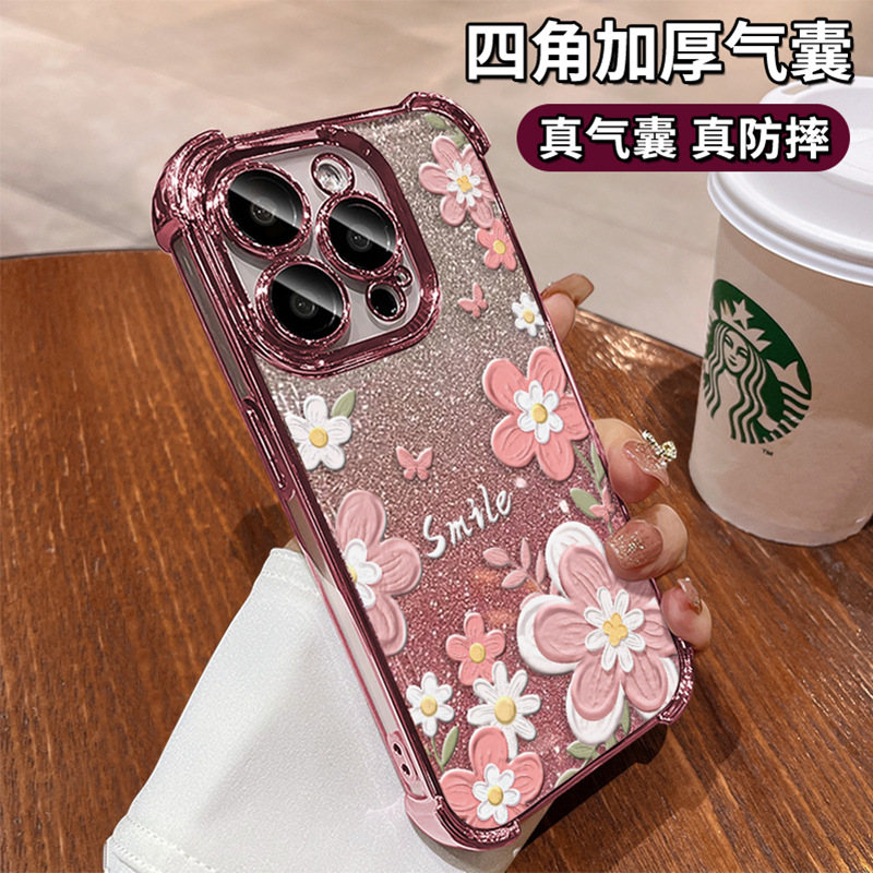 油絵花はリンゴ16pro四角エアバッグ携帯ケース15メッキ転倒防止14高級感13シリコンxを適用している