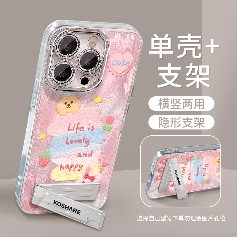 油絵いちご梨適用リンゴ16pro羽紗携帯ケーススタンド付き15高級感14かわいい転倒防止13