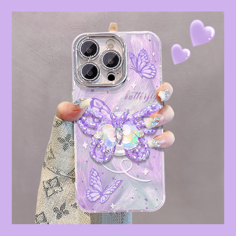 釘珠蝶スタンドはリンゴ16携帯ケース華為mate60pro羽紗15高級感14/13女を適用する