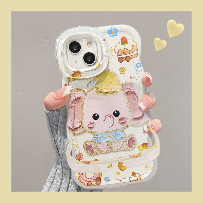 落書き油絵象はリンゴ16携帯ケース華為mate60proダブルスタンド15シリコン米14を適用する