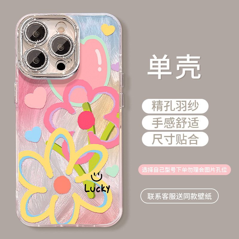 ドーパミンの花はiphone16 promaxリンゴ15携帯ケース14の転倒防止13全包12帯スタンドを適用します。