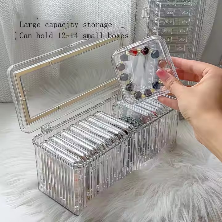 アクリルプラスチックストライプフリップボックスジュエリーアクセサリーボックスレディースイヤリングリングブレスレット収納ボックス