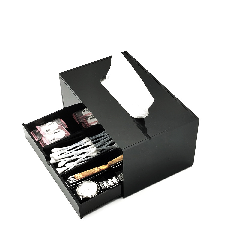 高級黒色アクリル抽出紙箱小香風アクリルナプキン箱多機能引き出し付き綿棒収納箱