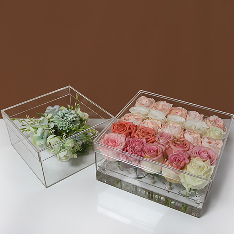 透明なアクリルの花の箱の永遠の命の花の箱は水を蓄えてバラの花瓶の花の花束の包装箱のギフトボックスを収納することができます。