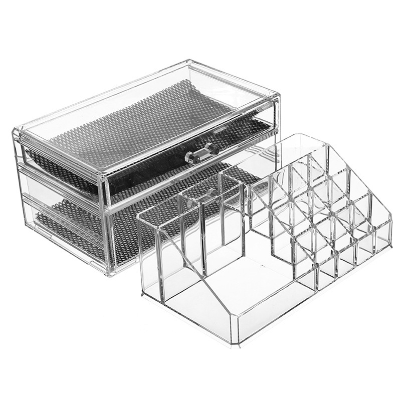 アクリルデスク収納棚引き出し付き三段物置棚口紅棚防塵透明化粧品展示ケース