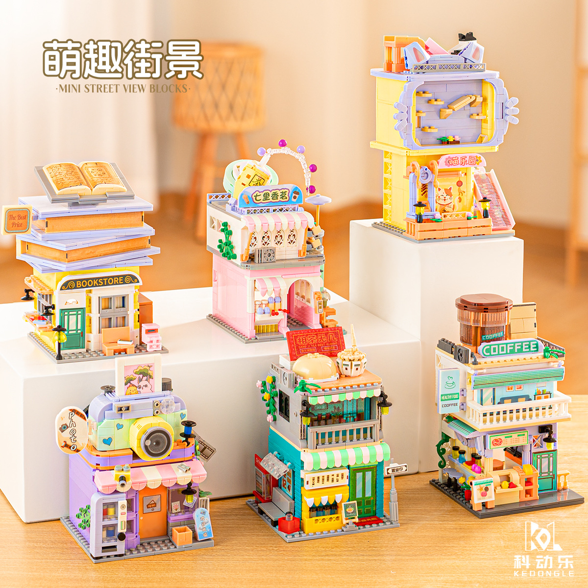 貝楽迪ののんびりしている時間の子供の益智はおもちゃのパン屋の喫茶店の小さい粒子の積み木の街並みの置物をつづり合わせます。