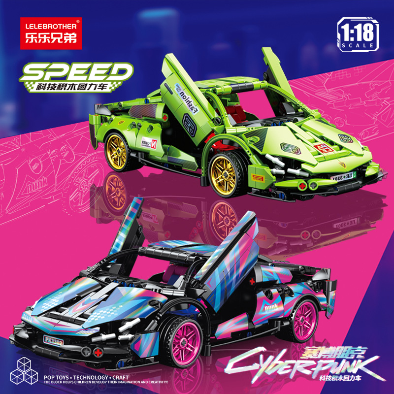 楽楽兄弟の積み木回力レースのサイバーパンクのスポーツカーの模型は子供の益智のおもちゃの男の子のプレゼントを並べます。