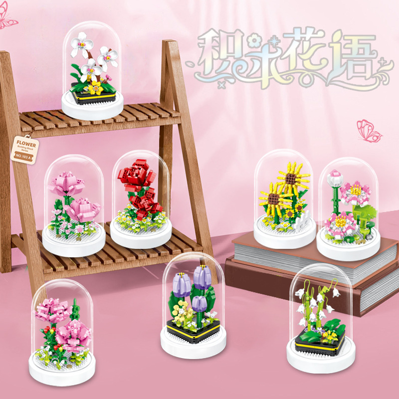 積み木花言葉シリーズ永生花薔薇カーネーションヒマワリ互換レゴ積み木花盆栽女子プレゼント