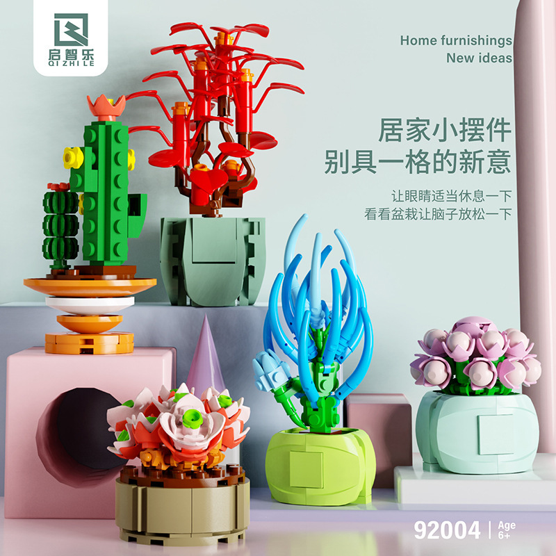 正博アニメシミュレーション花創意ミニ多肉鉢植え男女の子盛り合わせ積み木模型玩具プレゼントクロスボーダー