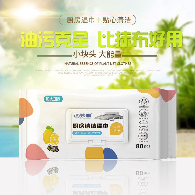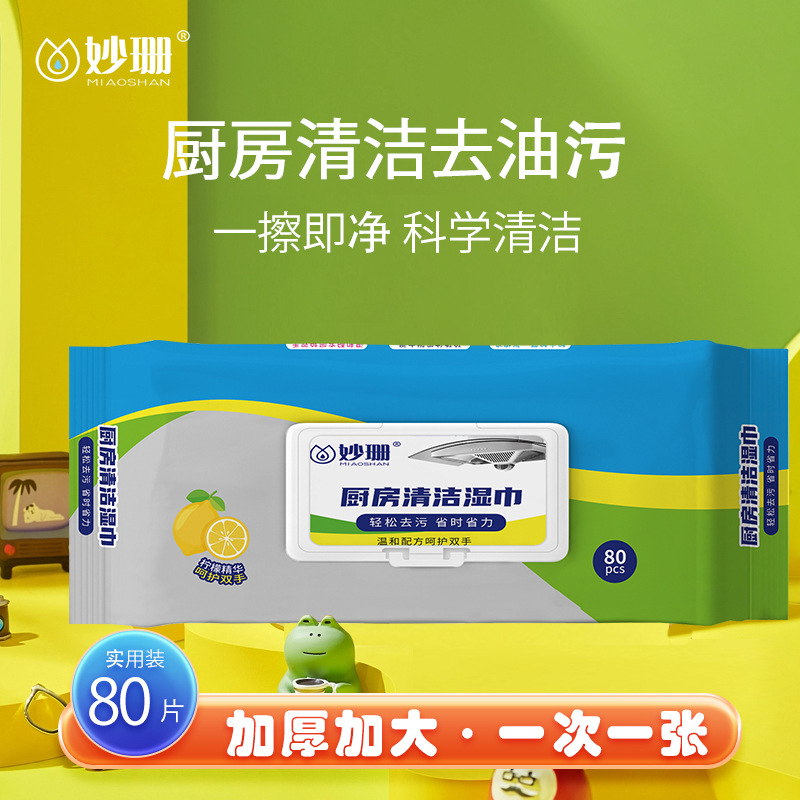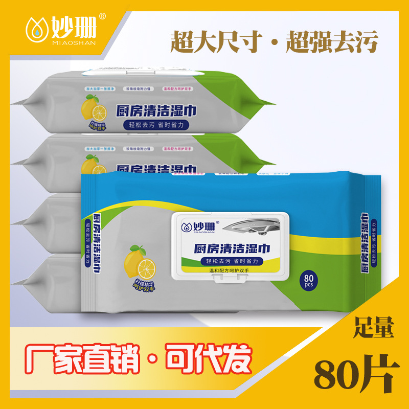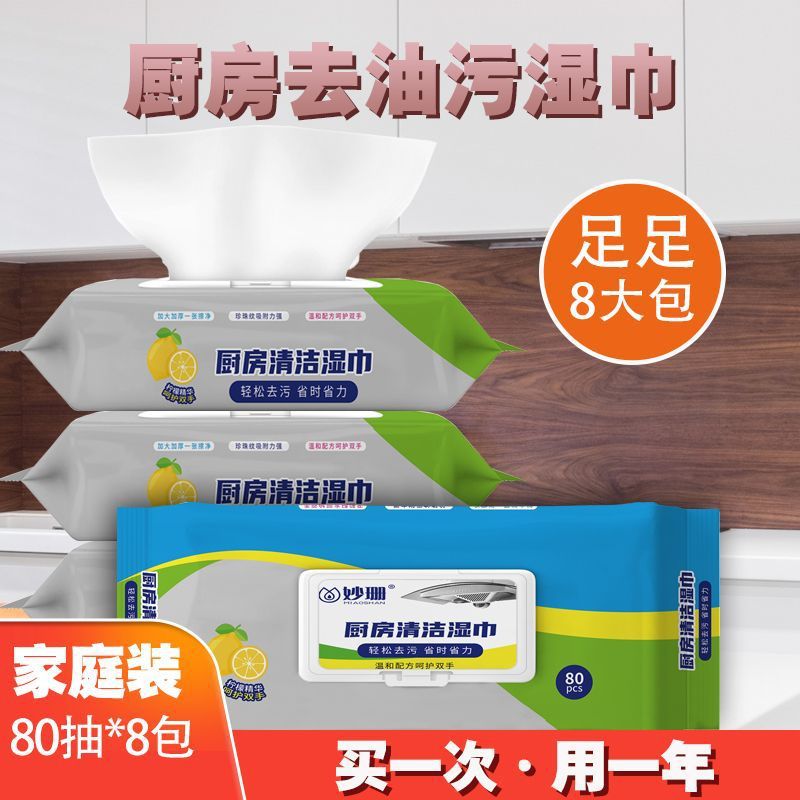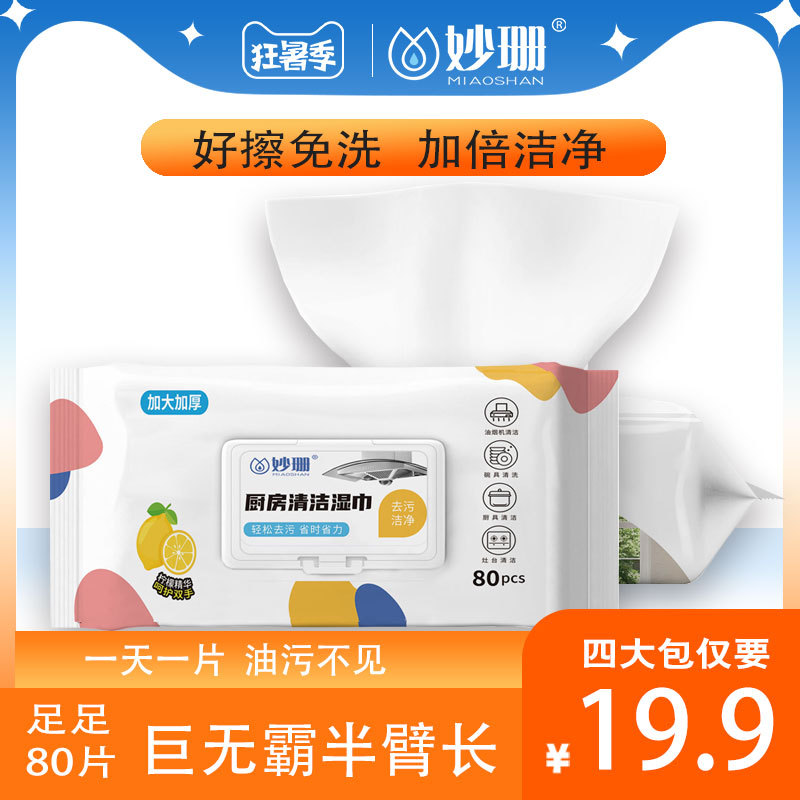 妙珊厨房湿巾ウェットティッシュ80枚の衛生清潔用紙台所で油汚れ吸引式家庭用4包