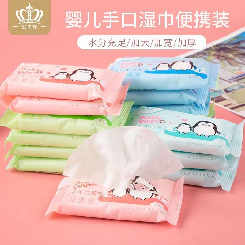 10袋の赤ちゃんの手の口の屁の専用の包みのウェットティッシュの新生児の家庭用の顔のウェットティッシュの紙を拭きます。
