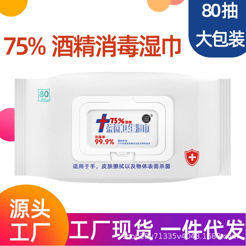 スポット卸売り75度アルコール消毒ウェットティッシュ使い捨て80袋殺菌除菌家庭用抗菌
