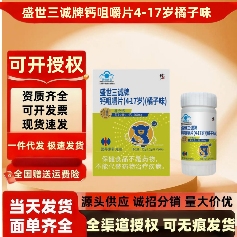 休正盛世三诚钙咀嚼片(4-17岁)甜橙味男女补充钙钙片一件代发批发