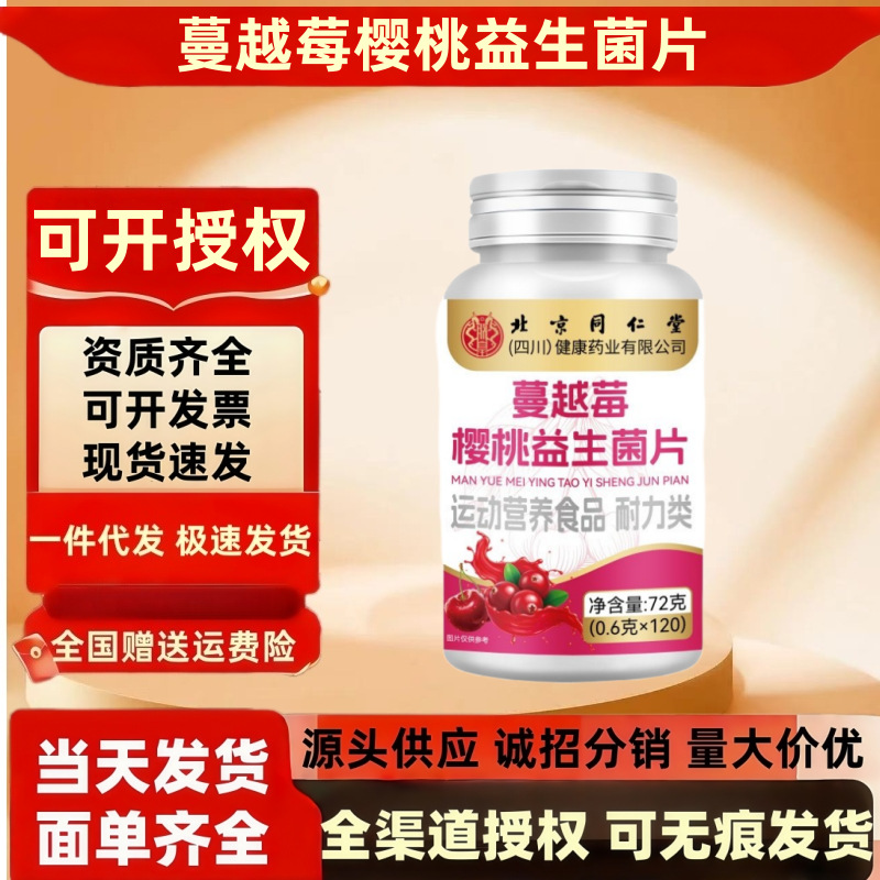 北京同仁堂 朕皇蔓越莓樱桃益生菌片72g 营养易吸收 温和一件代发