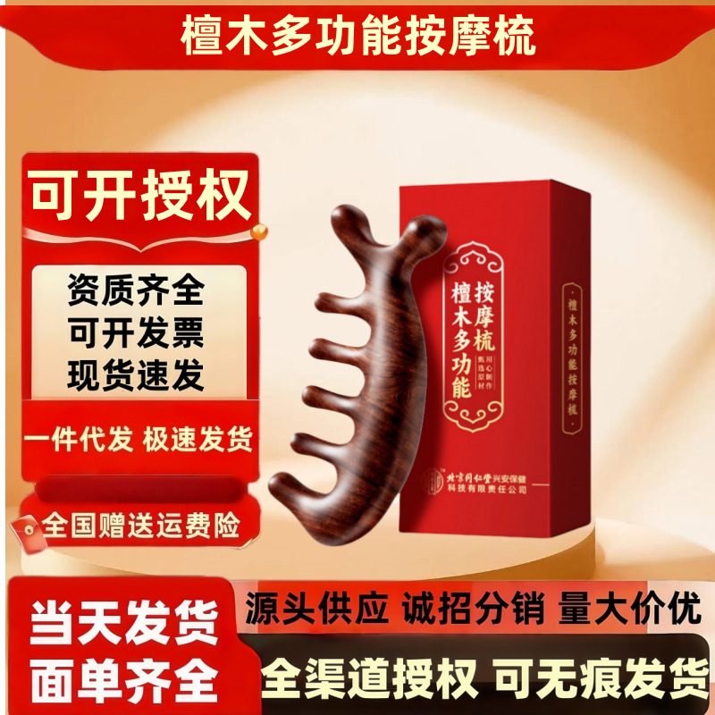 北京同仁堂内廷上用孔艾堂檀木多功能按摩梳经络梳宽齿梳子可代发