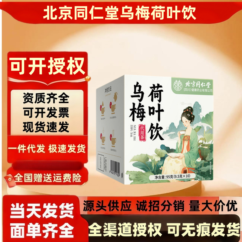 北京同仁堂乌梅荷叶饮95g独立小包代用茶橘皮乌梅荷叶袋泡茶批发