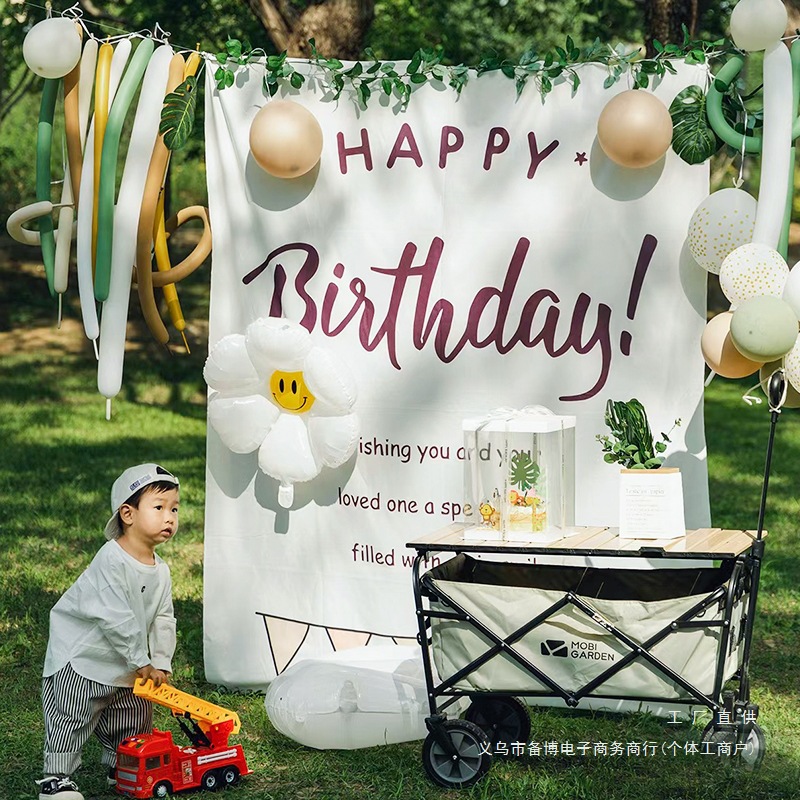 屋外の誕生日装飾シーンのレイアウト男の子と女の子の赤ちゃん子供の1歳のキャンプパーティー写真小道具バルーン吊り布