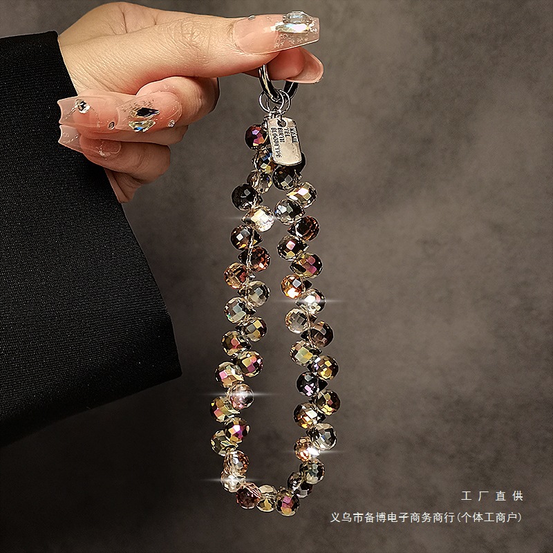 新しい高級クリスタルビーズハンドチェーンリストショートストラップクリップ付き携帯電話ケースキーホルダーバッグペンダント