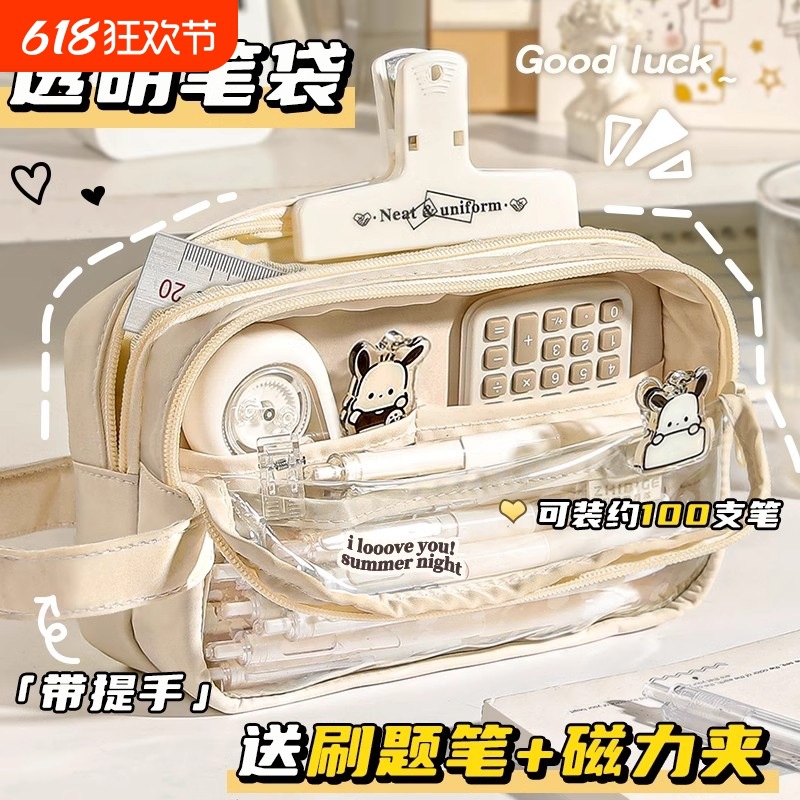 大容量透明筆袋 女子バージョン 2024年新中学生筆箱 高見えシンプル日本イン