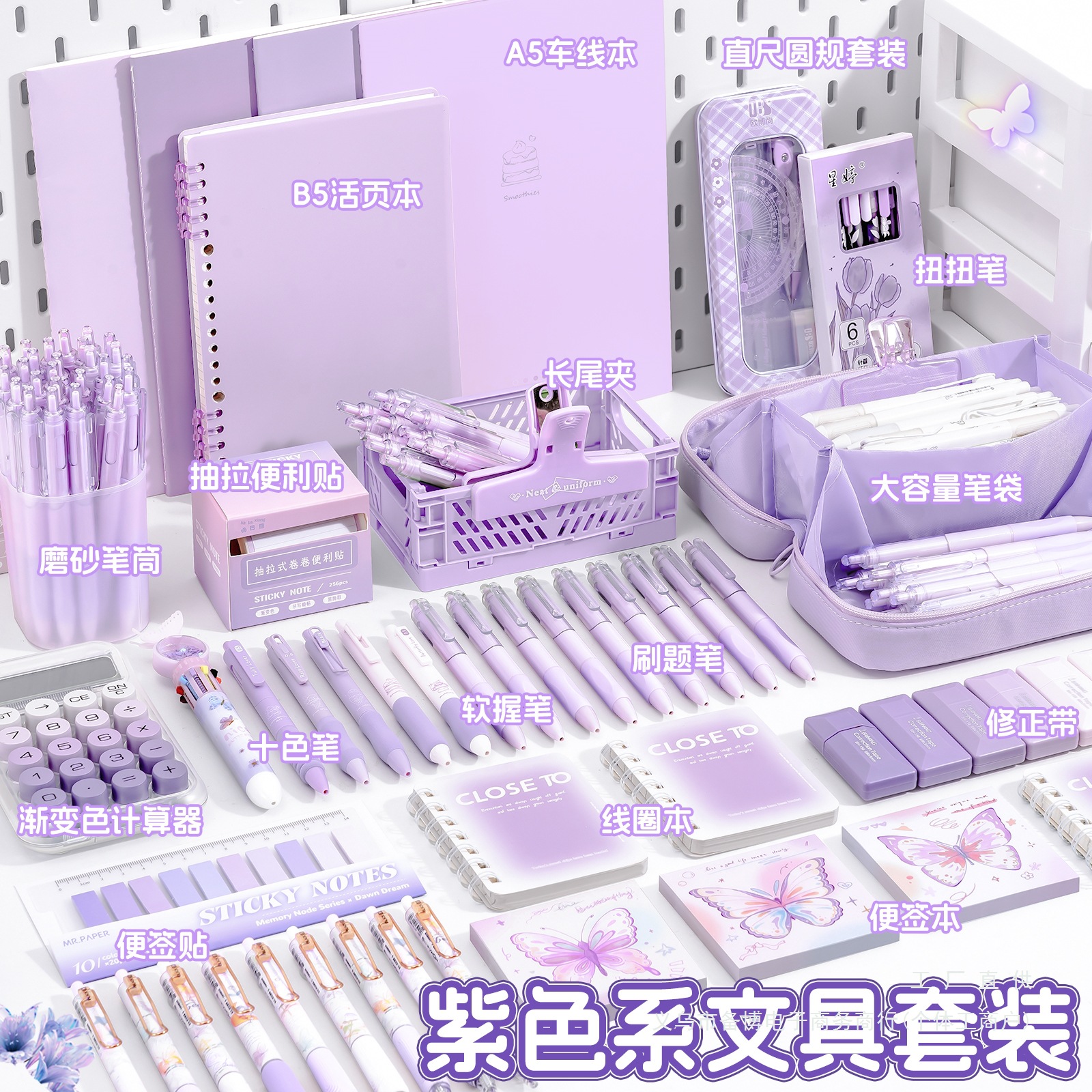 新しい紫色の文具セットギフトボックス新学期ギフトパッケージ1年生の誕生日プレゼント鉛筆バッグ子供のお土産