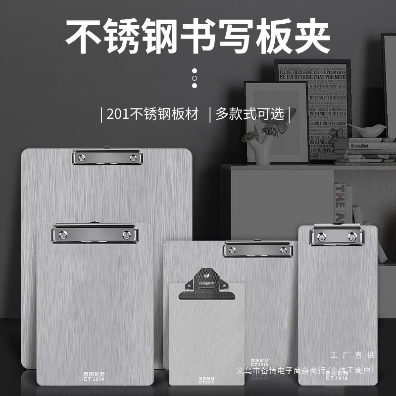 スプリングフィールド ステンレス鋼 メタル ファイル ボード クリップ ライティング クリップ ファイル フォルダー パッド ノート クリップ 吊り下げ可能なフォルダー A4A3